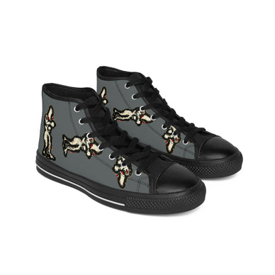 InTense – Women’s High-Top Canvas Sneakers with Abstract Figure Art – Dark Grey Background